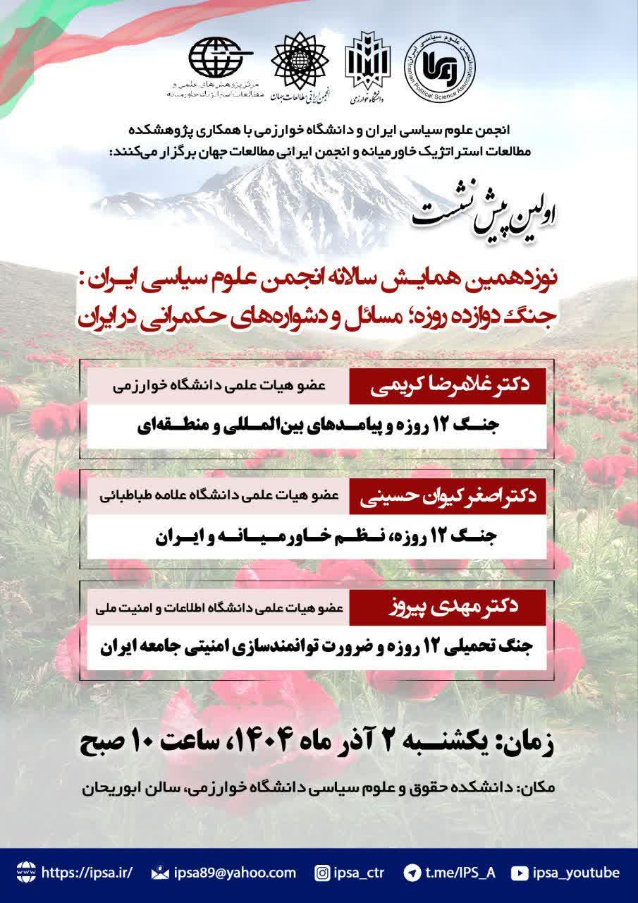 اولین پیشنشست همایش با حضور دکتر غلامرضا کریمی، دکتر اصغر کیوان حسینی و دکتر مهدی پیروز، روز یکشنبه، ۲ آذر، دانشگاه خوارزمی